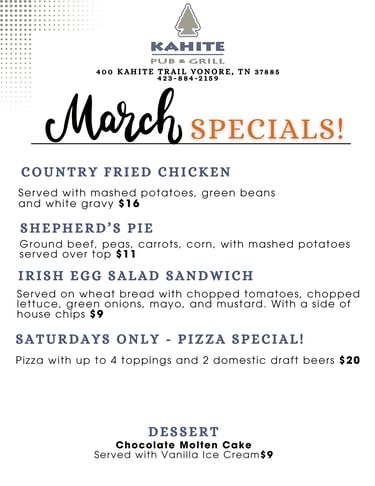 PIZZA - We now have PIZZA at the pub, you can even order it to go.