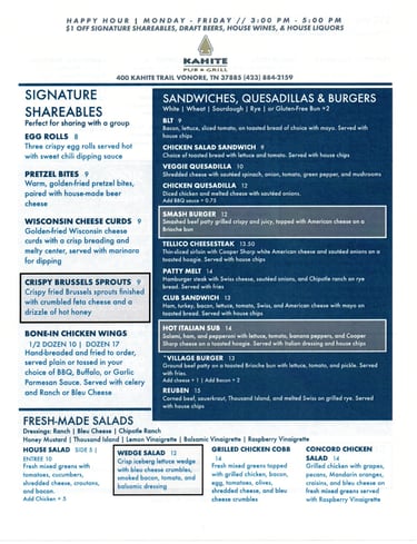 10:30 AM to 8:00 PM - Full Menu (7 Days per Week)